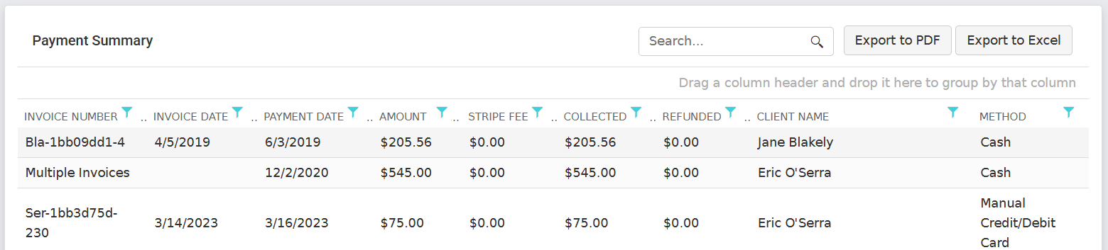View a detailed report of every payment received by your practice. Each record in this report contains the following information: