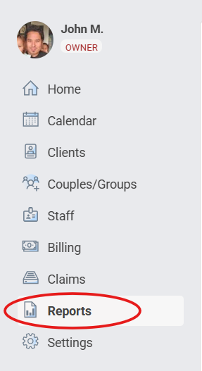 Navigate to the Reports area of Therapyzen